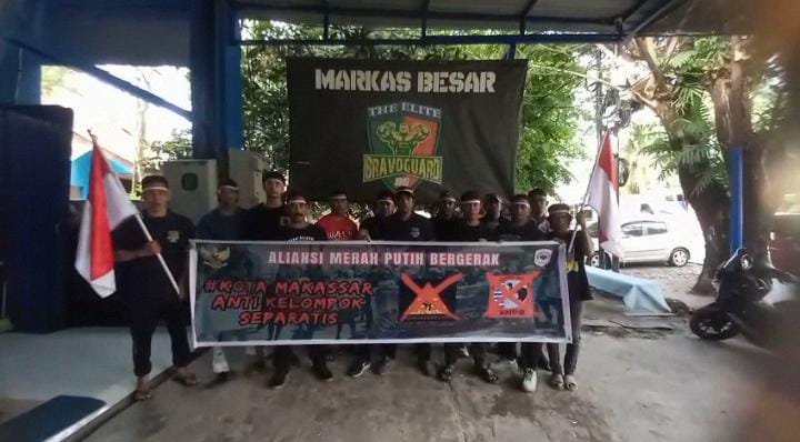 MAKASSAR — Aliansi Merah Putih Bergerak (AMPB) bersama organisasi masyarakat Bravo Guard menyatakan penolakan terhadap rencana aksi peringatan 1 Desember yang disebut sebagai HUT Organisasi Papua Merdeka (OPM) oleh kelompok Komite Nasional Papua Barat (KNPB) dan Aliansi Mahasiswa Papua (AMP) di Kota Makassar.