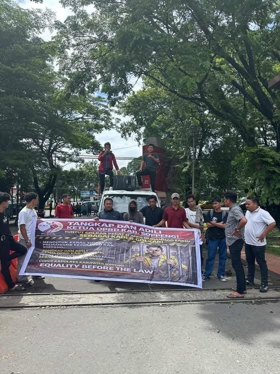 Aksi tersebut dipimpin oleh Romi Arunanta selaku Jenderal Lapangan. Massa aksi membawa tiga tuntutan utama, yakni menangkap dan mengadili Ketua DPRD Soppeng, mencopot Kasat Reskrim dan Kapolres Soppeng yang diduga tidak profesional atau “masuk angin”, serta memecat Muhammad Farid sebagai kader Partai Golkar.