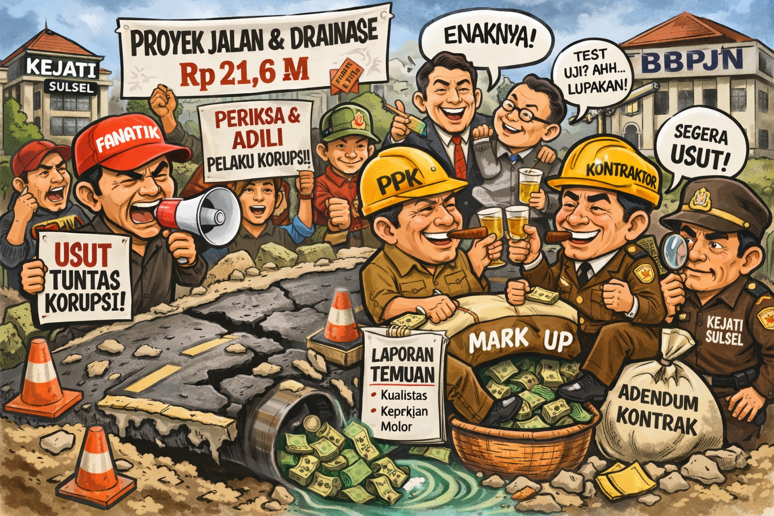 Makassar – Forum Aktivis Nasional Anti Korupsi (FANATIK) akan menggelar aksi unjuk rasa sebagai bentuk kontrol sosial terhadap dugaan penyimpangan dalam pelaksanaan proyek rehabilitasi jalan dan penanganan drainase senilai ±Rp21,6 miliar yang bersumber dari APBN Tahun Anggaran 2025.
